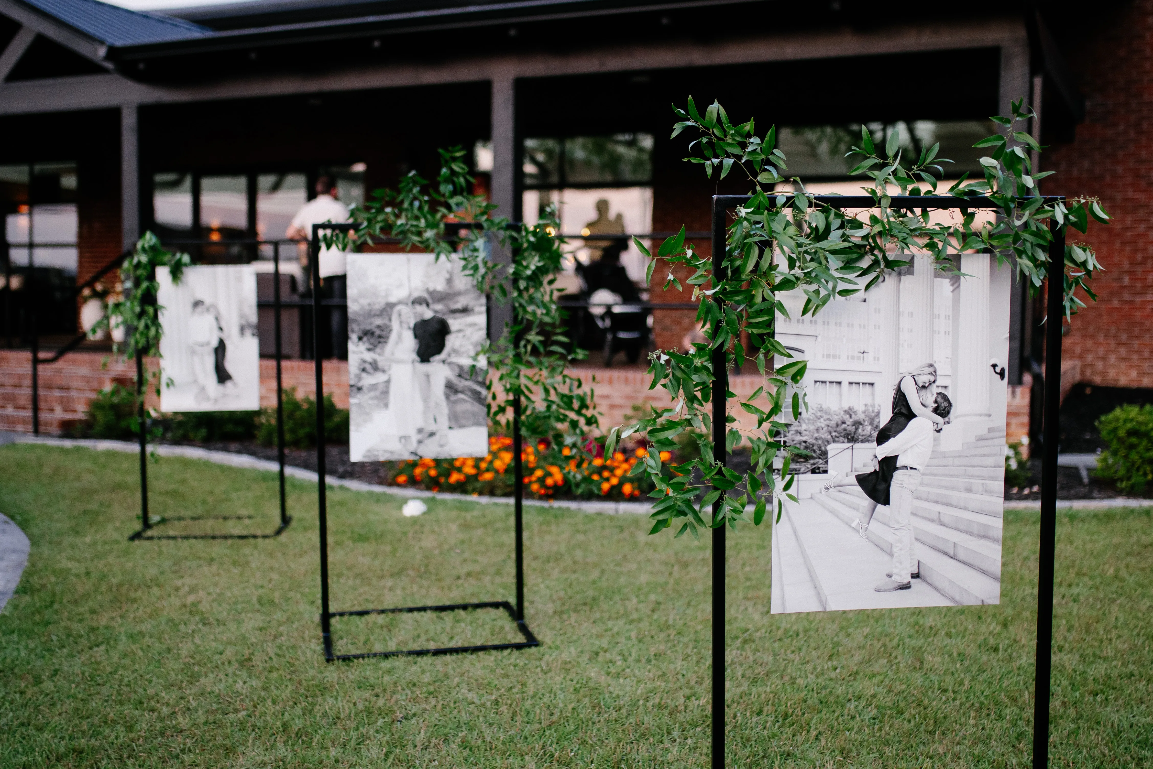 Make a lasting impression at your special event with a custom portrait or welcome sign displayed in our elegant but portable and secure metal stand. This is a perfect way to line the path to your ceremony or reception.